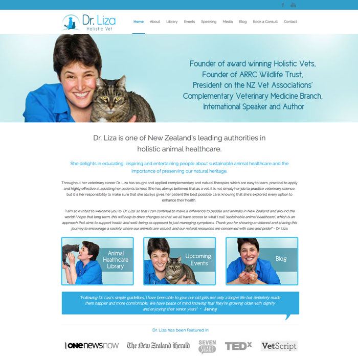 A new responsive and mobile friendly website for holistic vet Dr. Liza Schneider, national speaker and founder of ARRC wildlife trust. I also designed their logo and facebook page. Features of this website included custom graphics throughout the website and a blog for news updates.