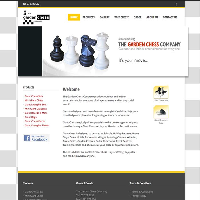 A new responsive and mobile friendly website for a Garden Giant Chess and Draughts company.