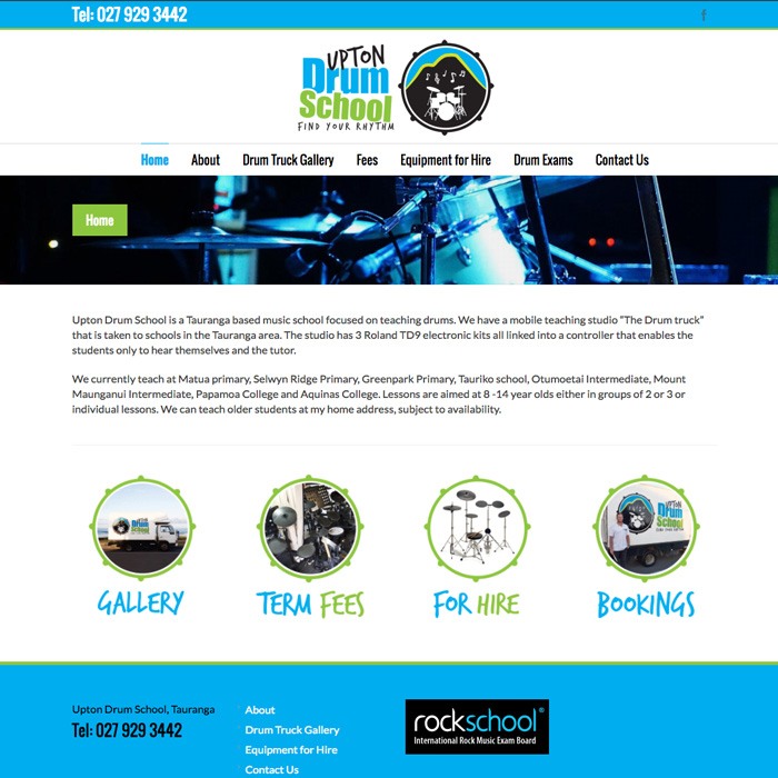 A bright, colourful and fun looking website aimed at young drumming students. The tutor wanted his website to appeal to a younger audience but at the same time look professional. I also did the logo and flyer design for this new brand, check them out in my portfolio!!!